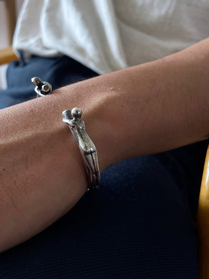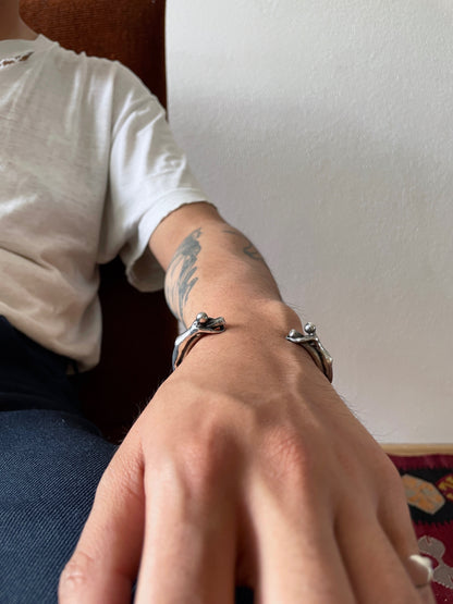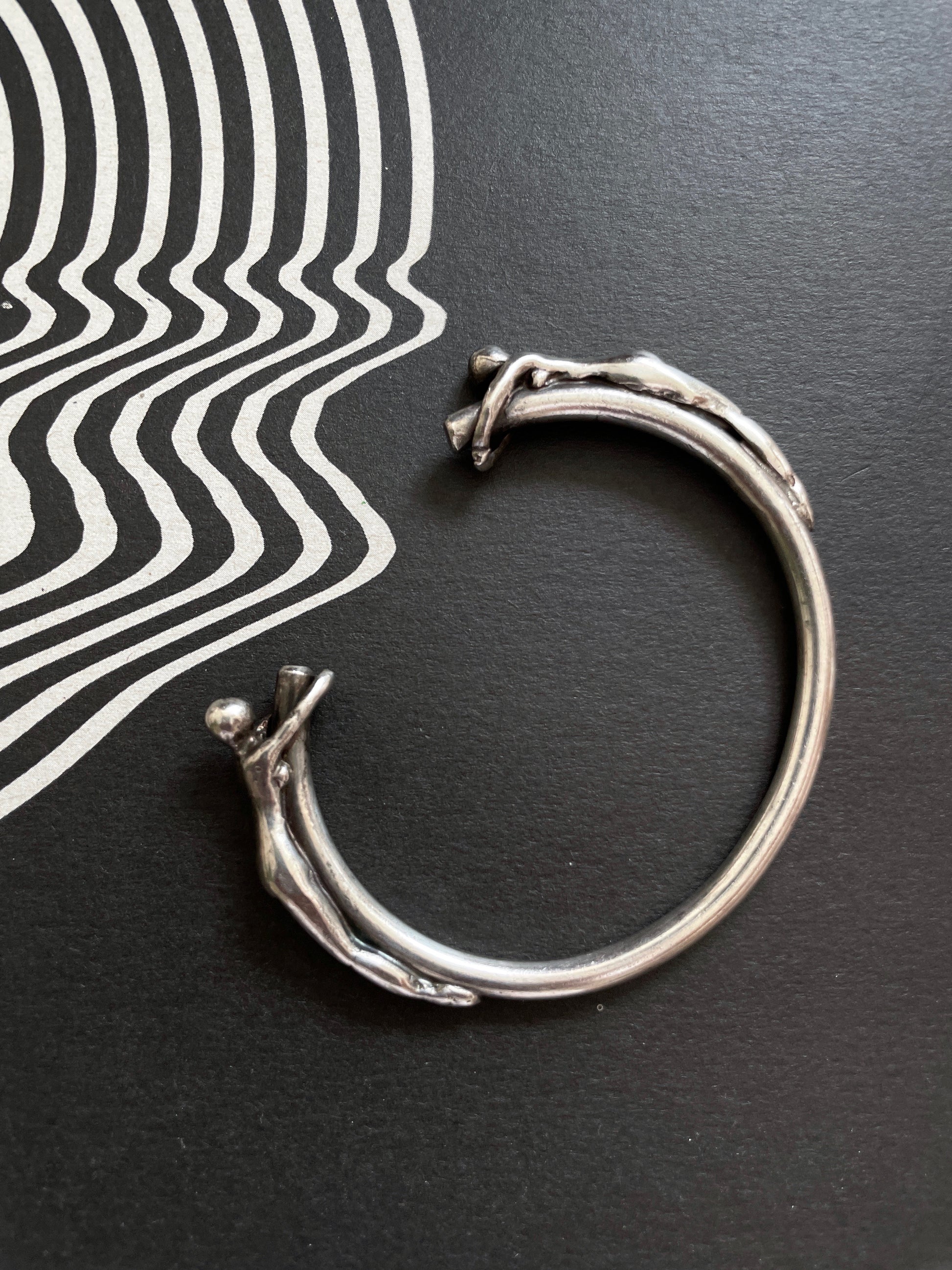 裸の女性が両側からしがみついて支え合っているような、意味合いを感じるデザイン。