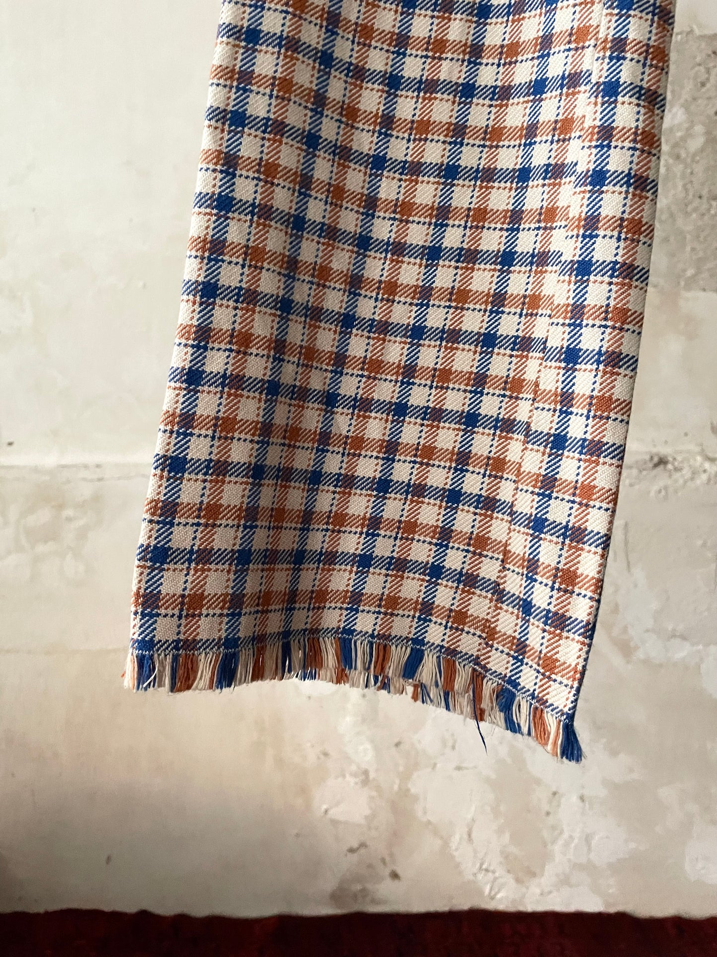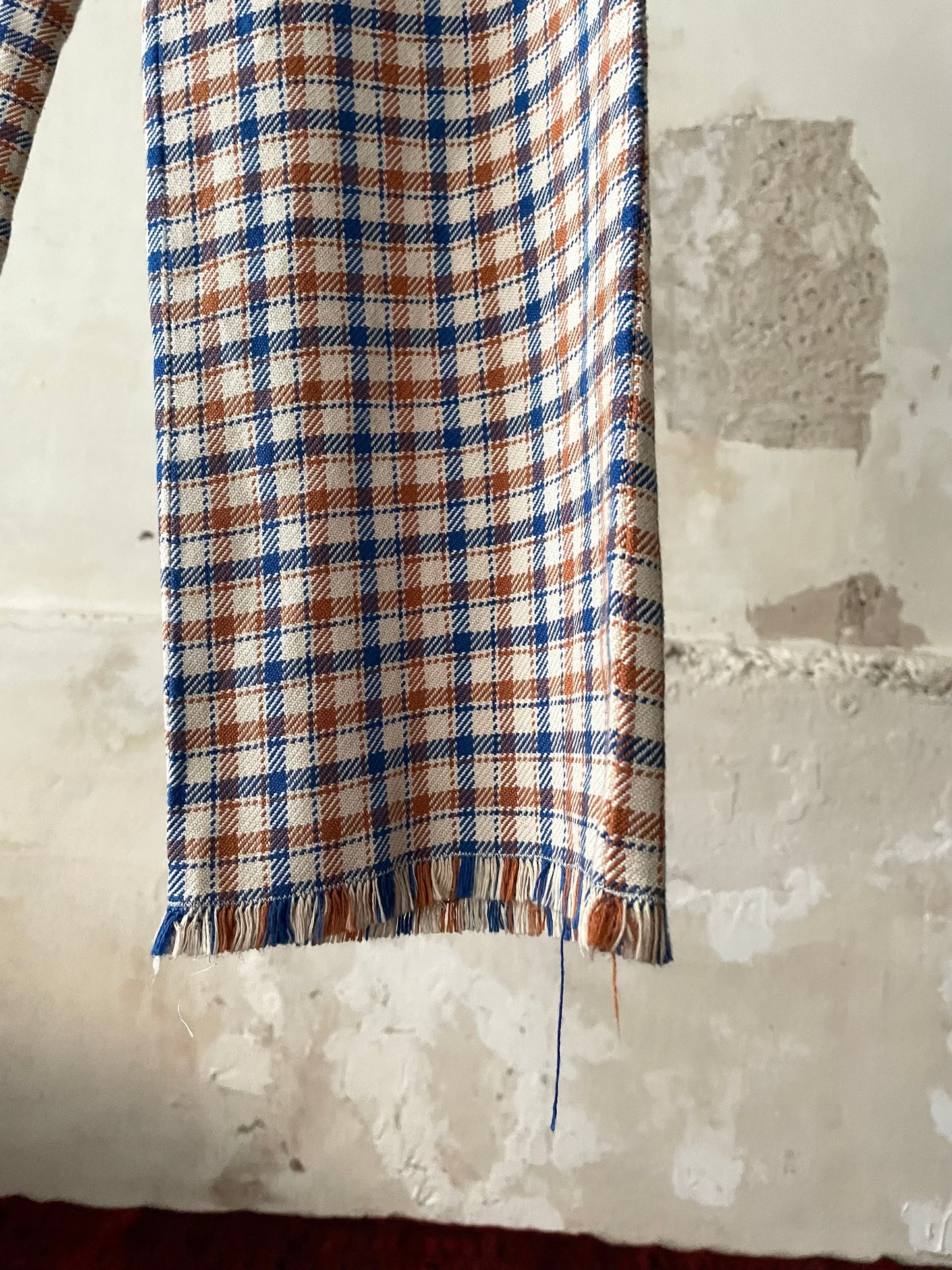 白、青、茶の3色チェックが新鮮なカラーリング。