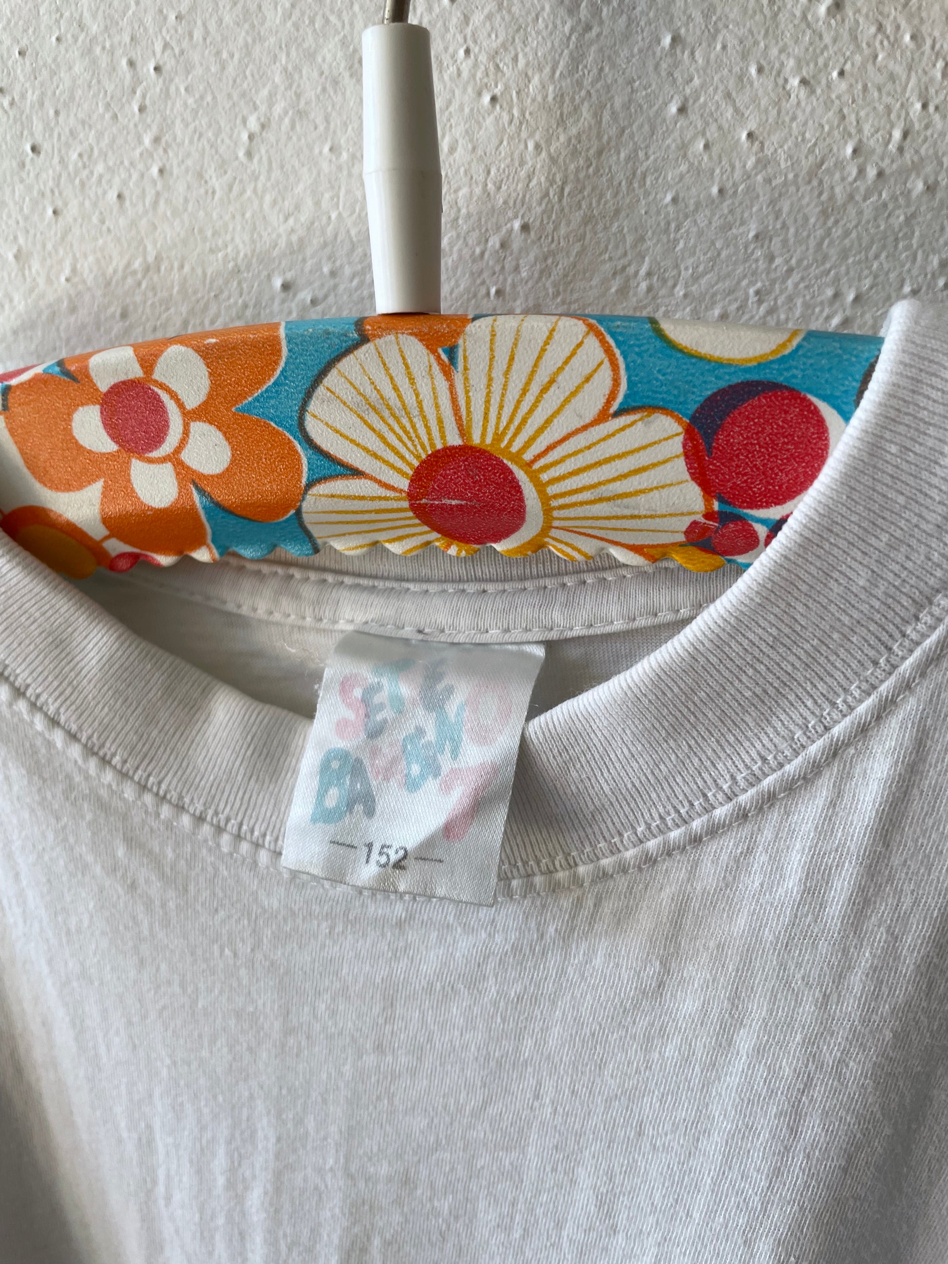 サイズ感はレディースS-M程です。着丈も長く無いのをセレクトしています。