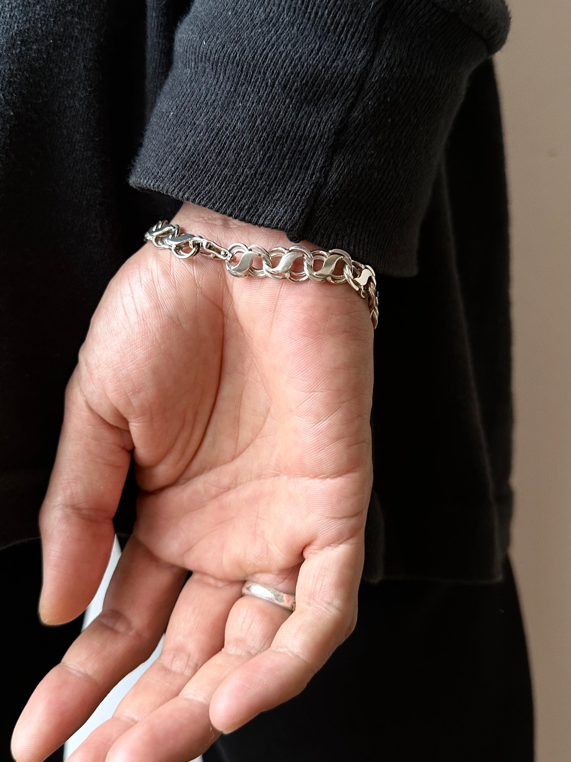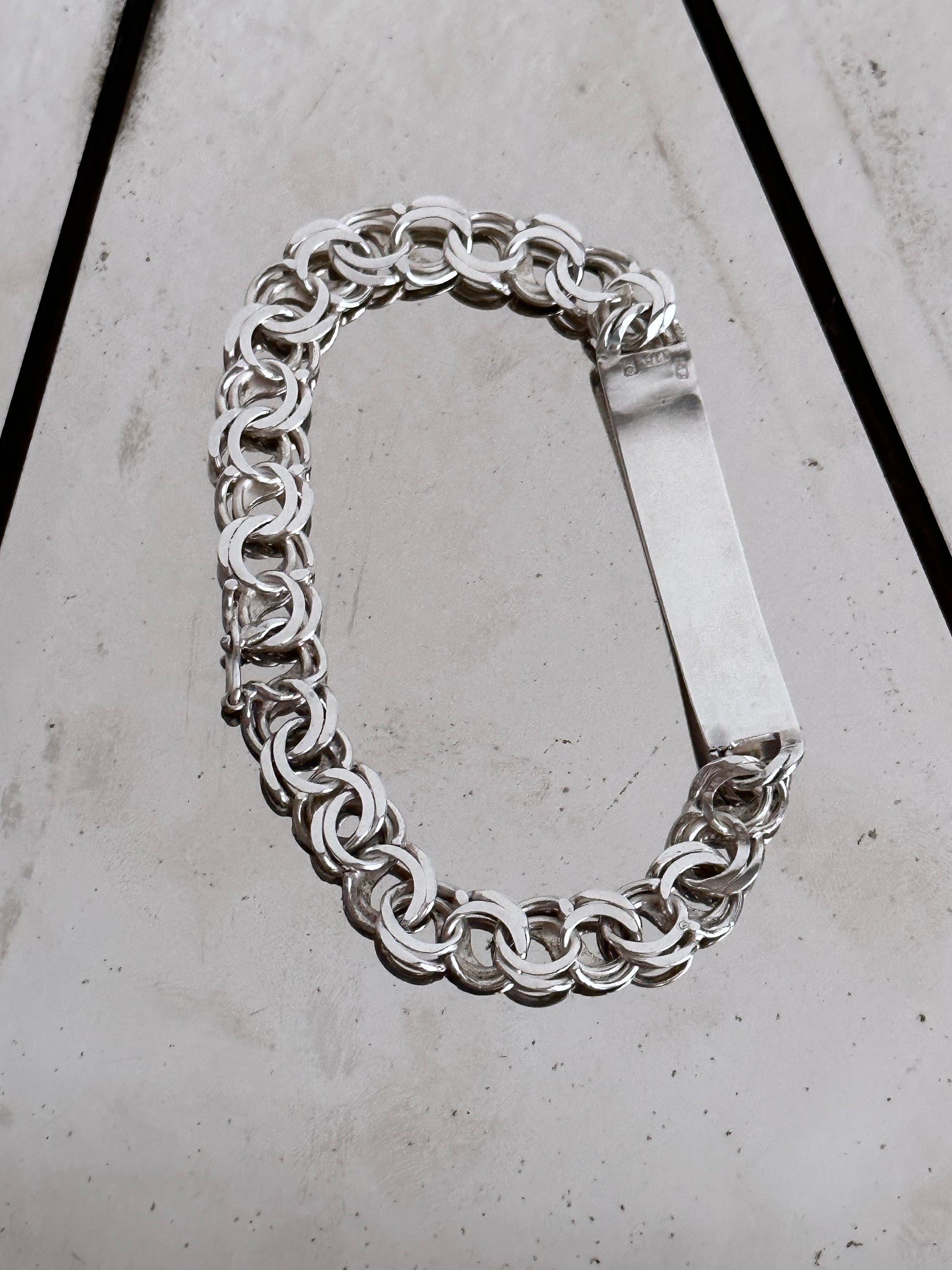 こちらのブレスレットは中央にプレートが入ったIDブレスレットにガリバルディチェーン。