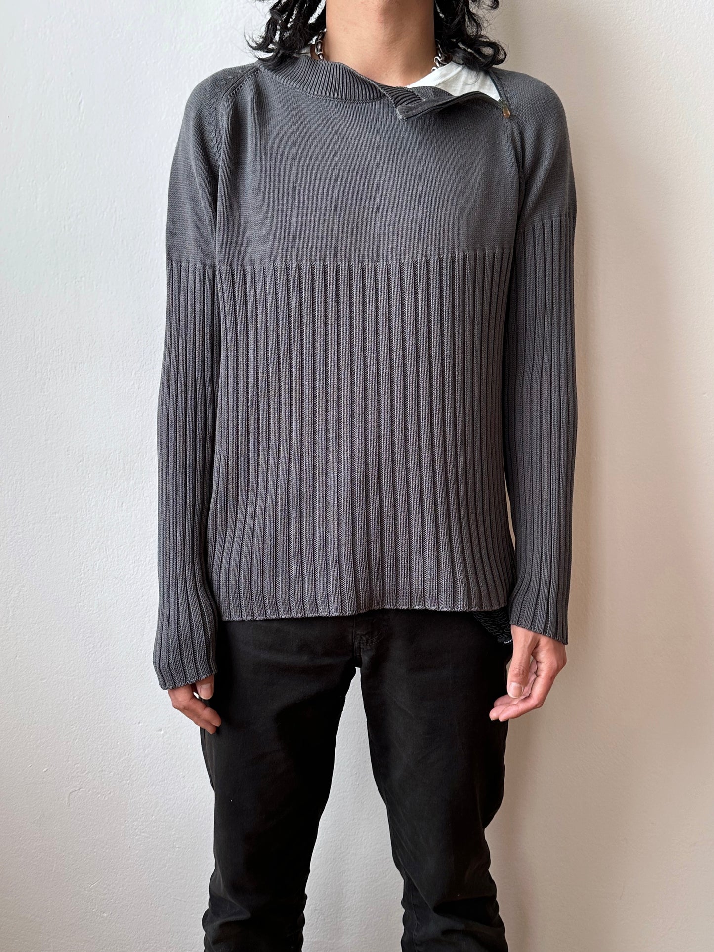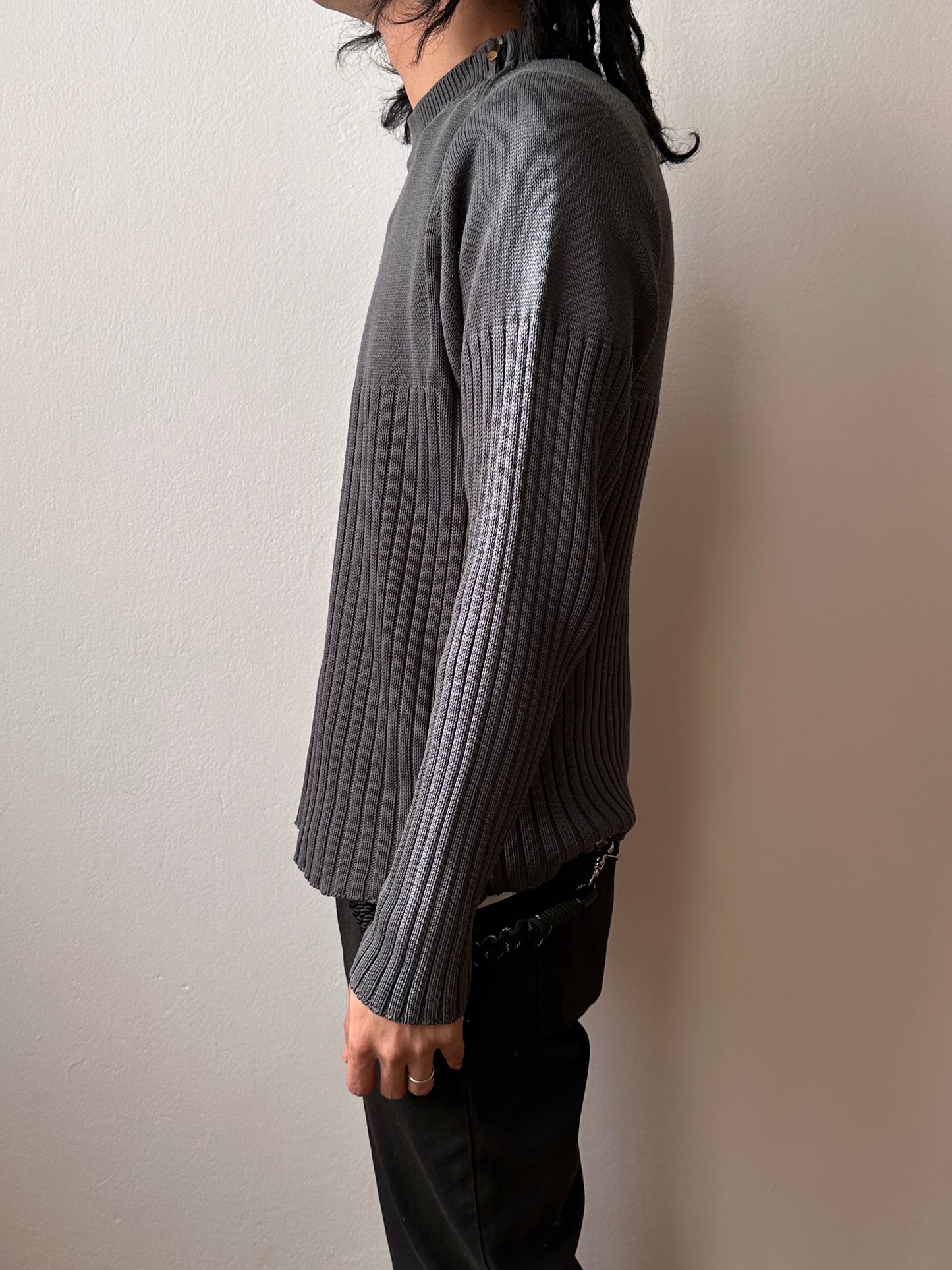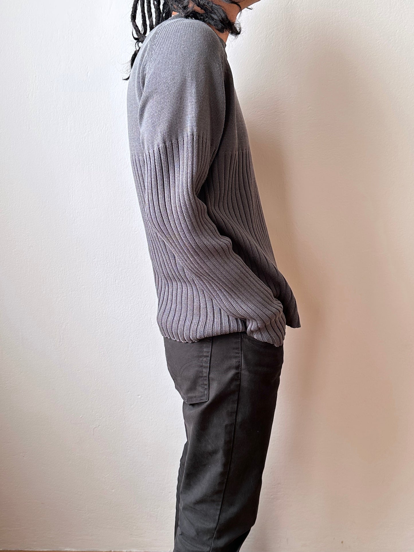 編み方が変わっていたり、都会的な灰色だったりとかっこいいニットです。