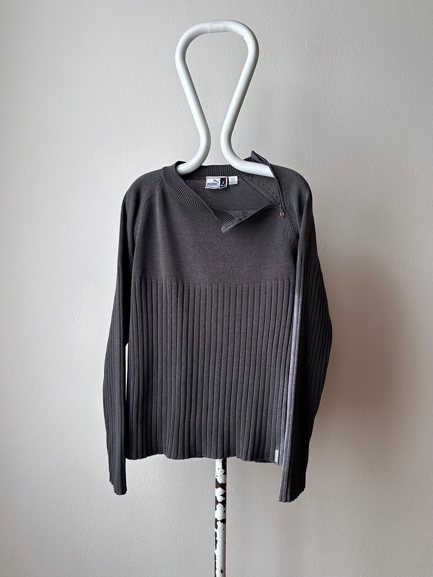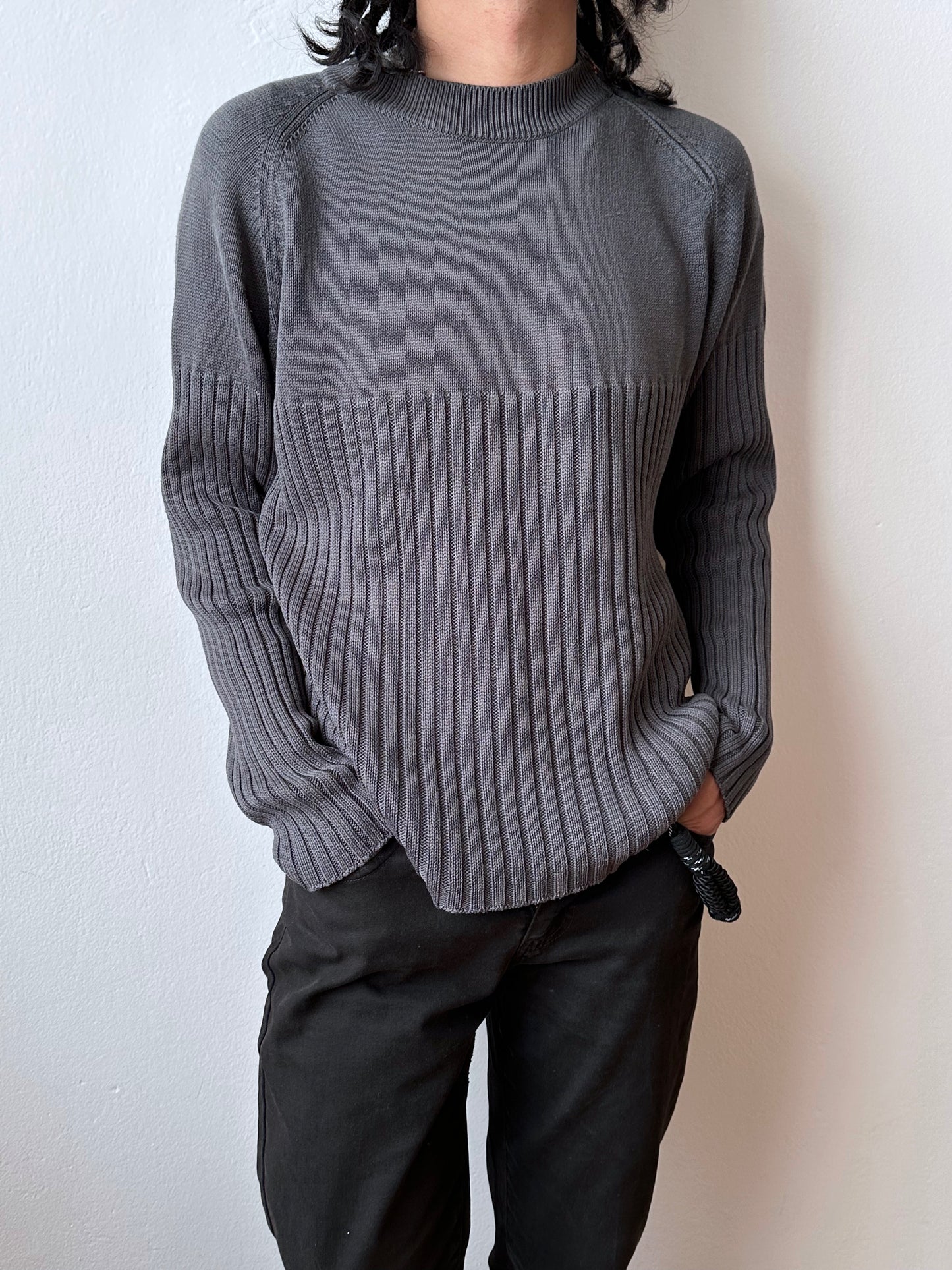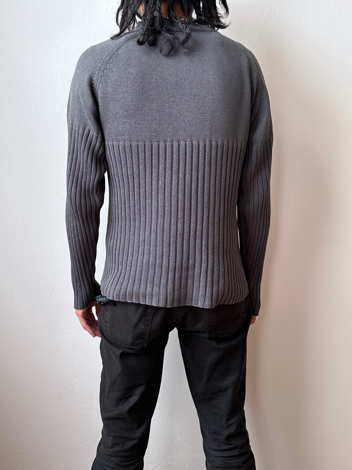 編み方が変わっていたり、都会的な灰色だったりとかっこいいニットです。