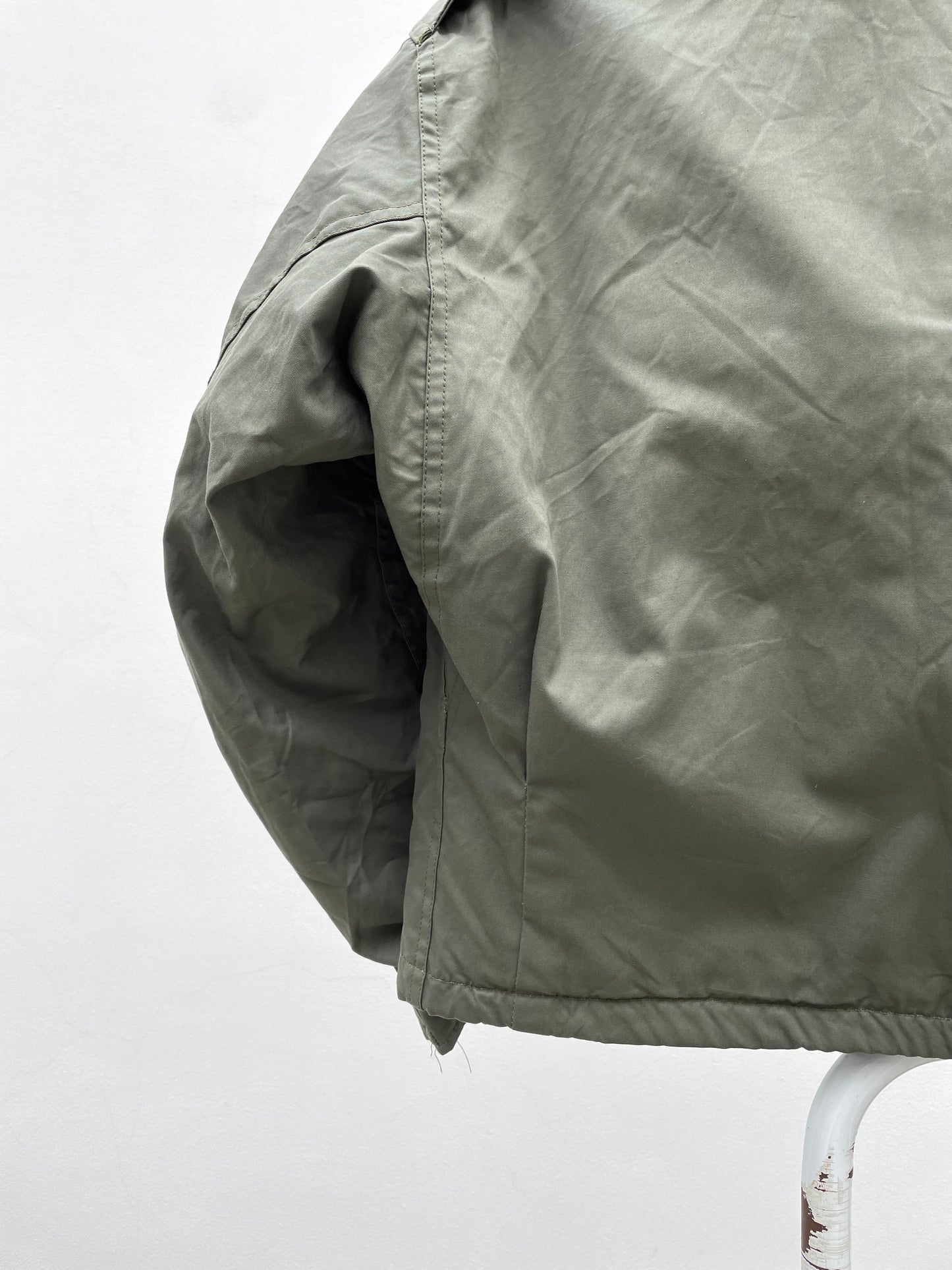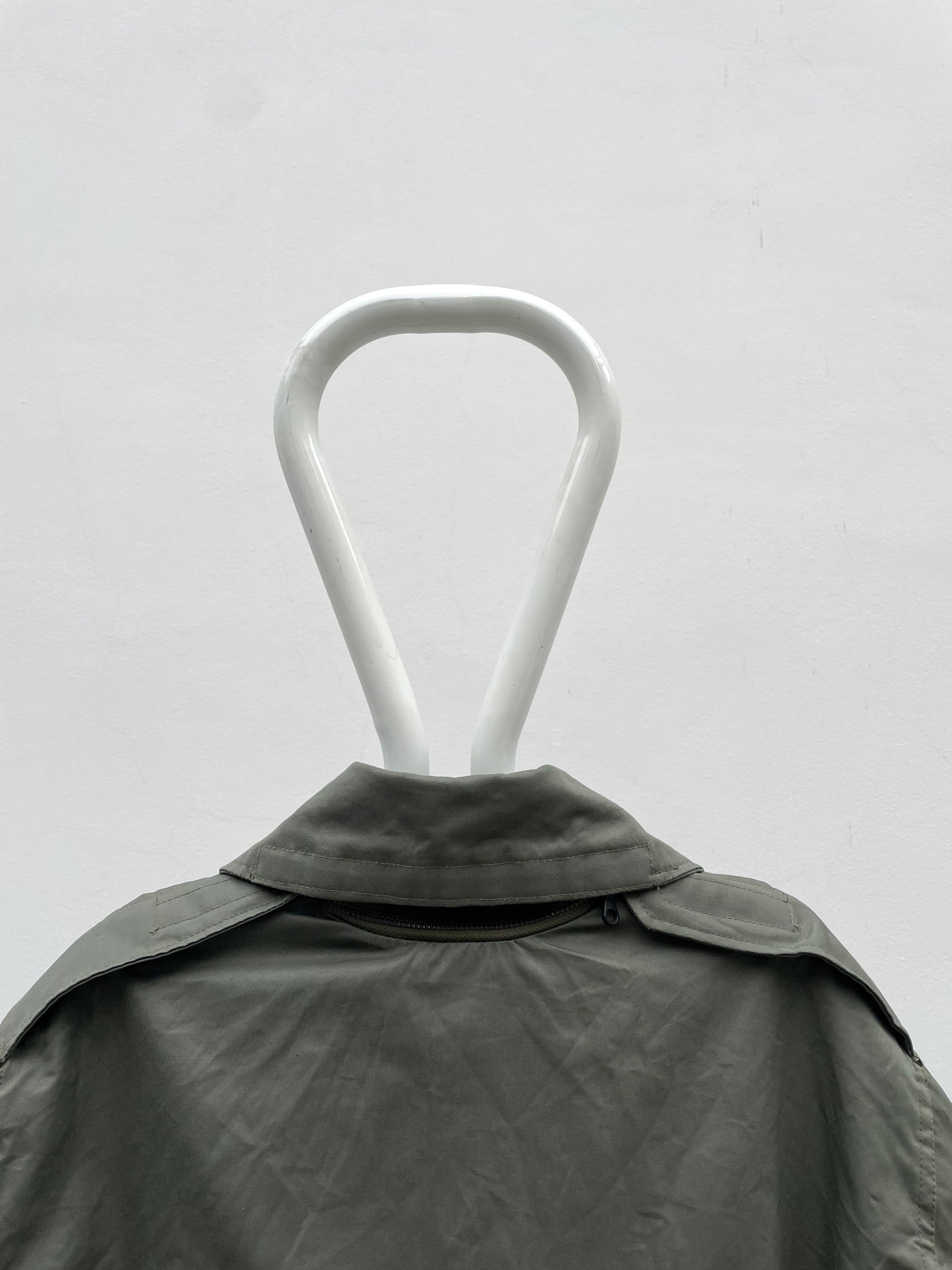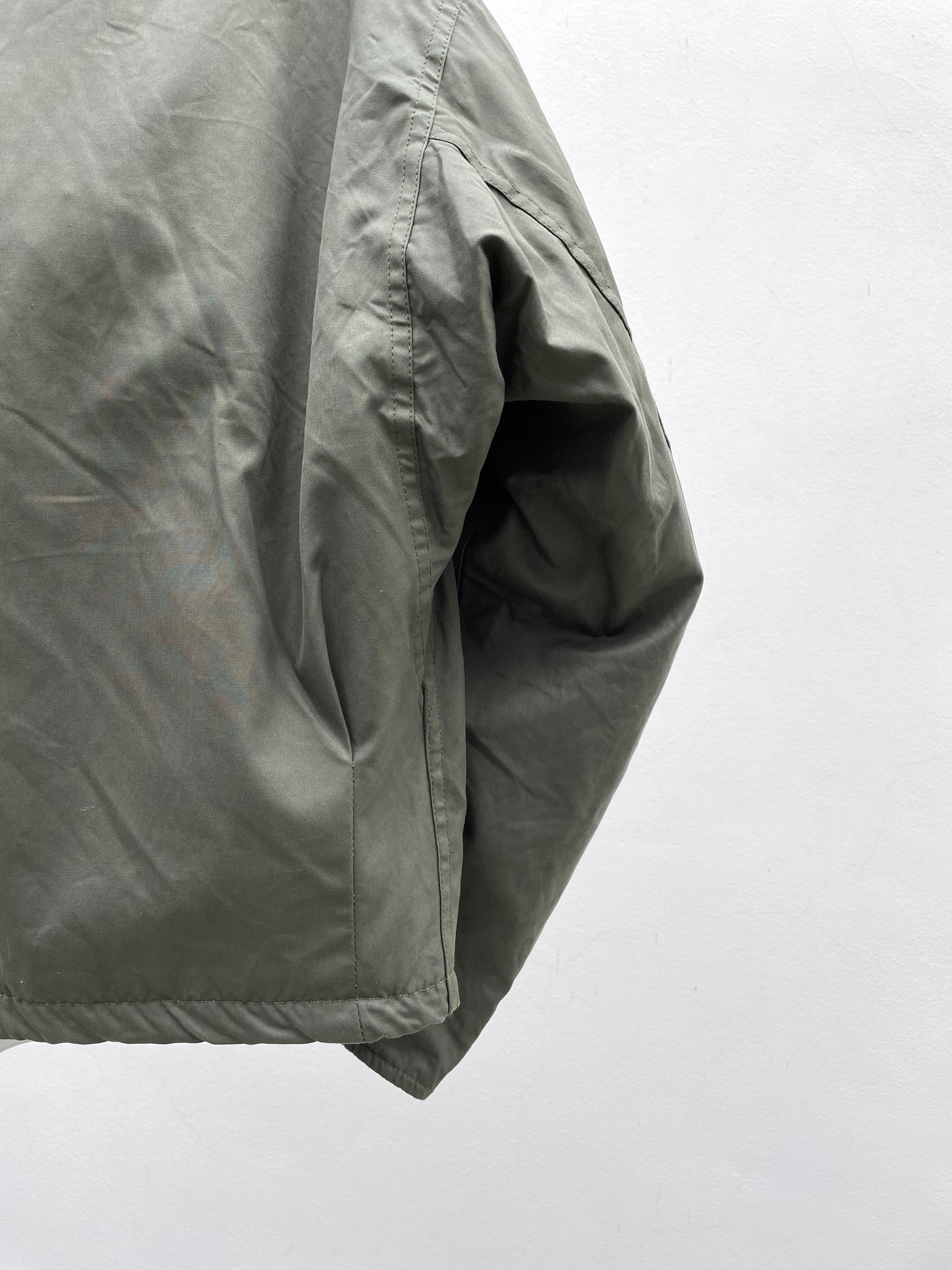 大まかにはボタンやジッパーがプラスチックに変更されたり、袖のユーティリティーポケットにパットが入っていたりと、後色が少し変わっていて、深いオリーブになっています。