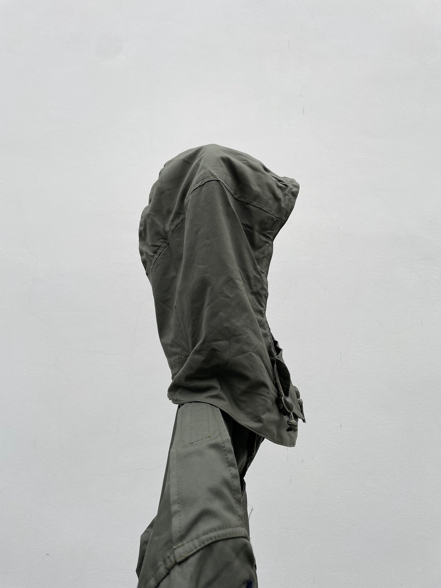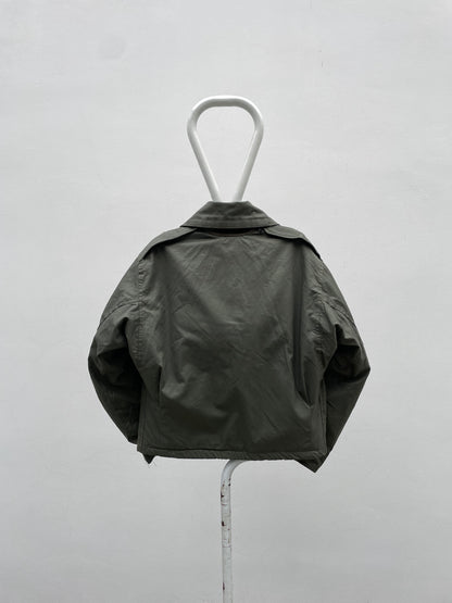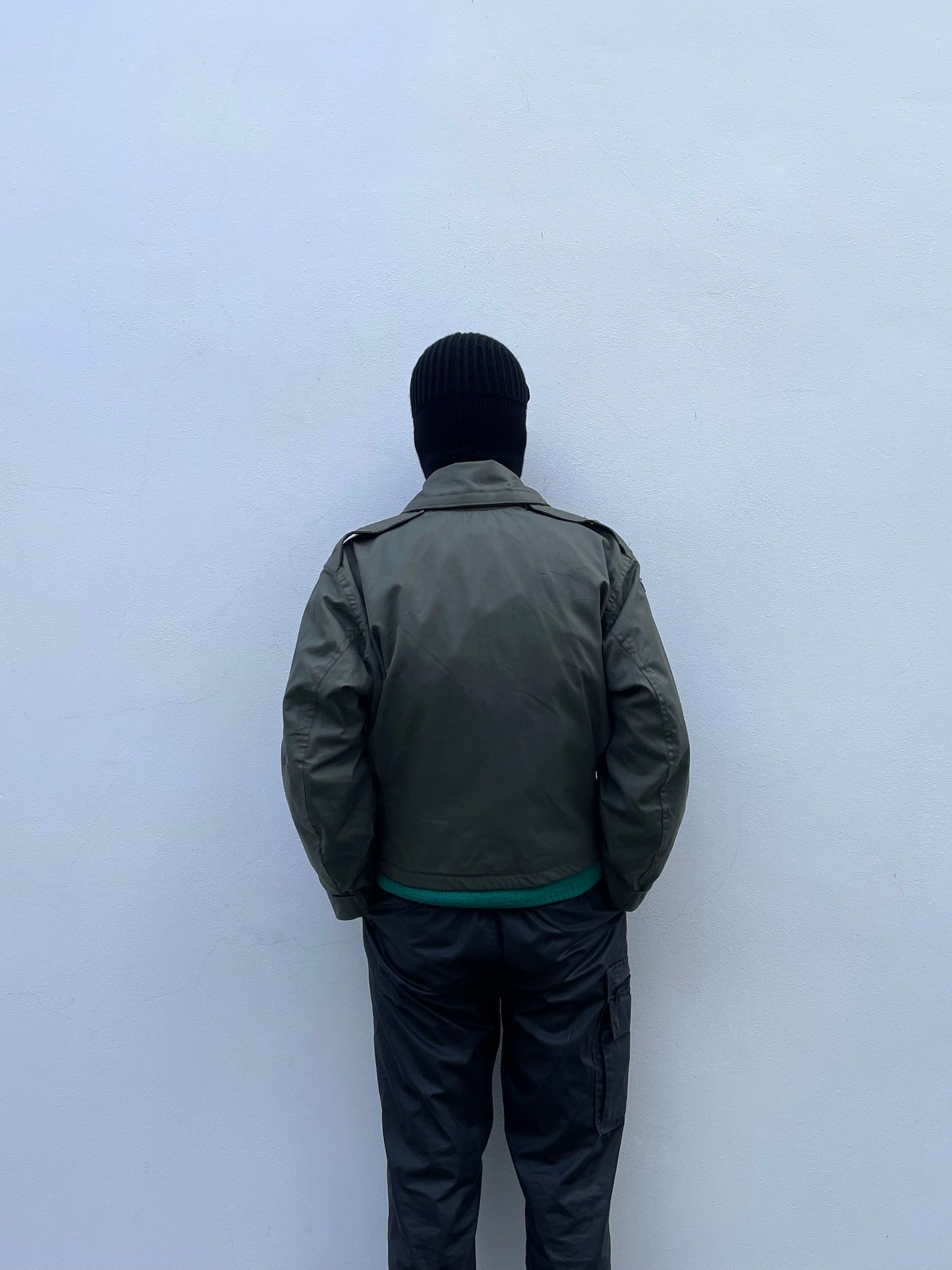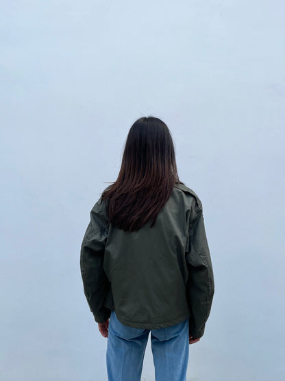 大まかにはボタンやジッパーがプラスチックに変更されたり、袖のユーティリティーポケットにパットが入っていたりと、後色が少し変わっていて、深いオリーブになっています。