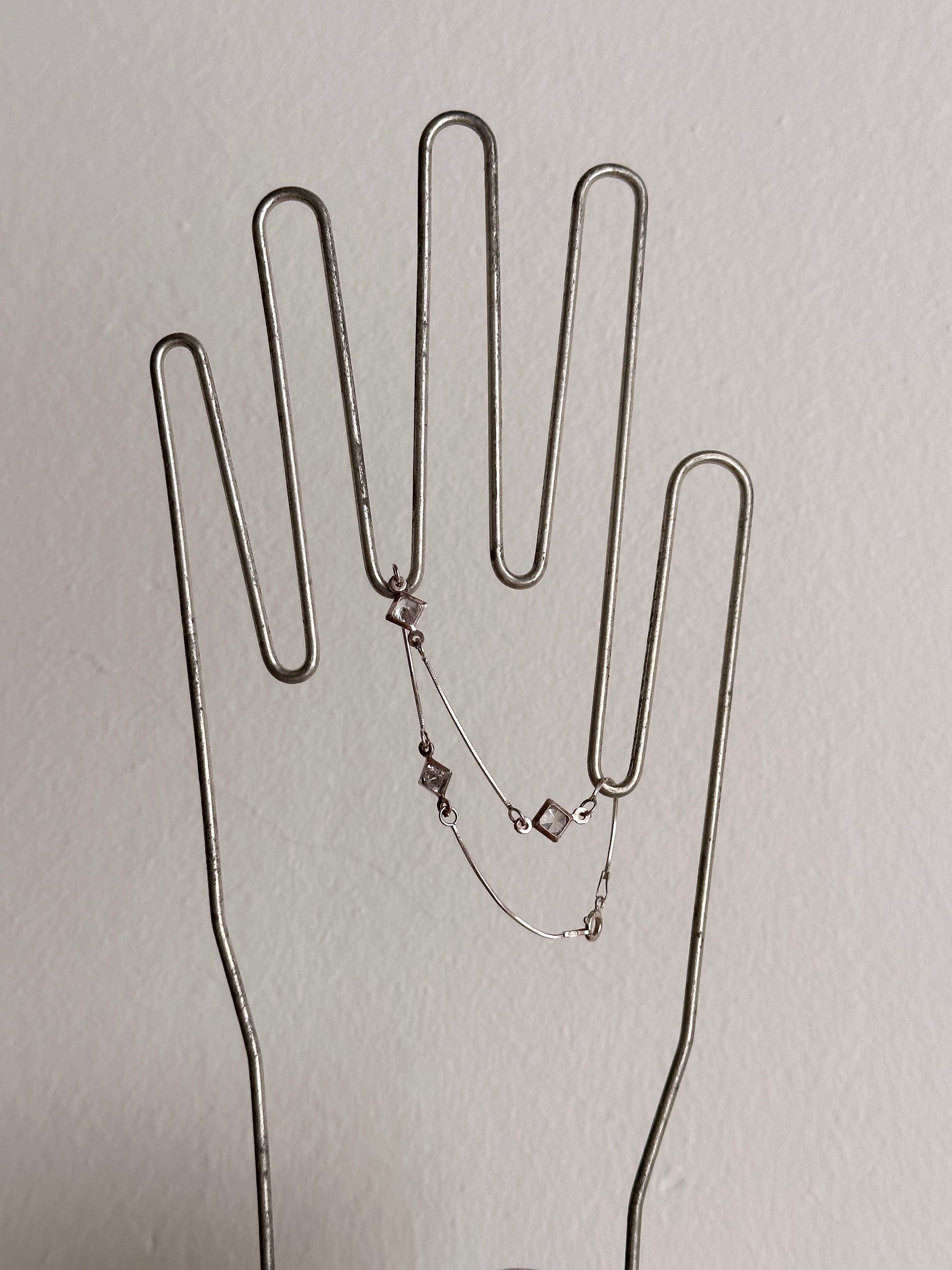 細手のスネークチェーンに、3つのストーンが等間隔についています。