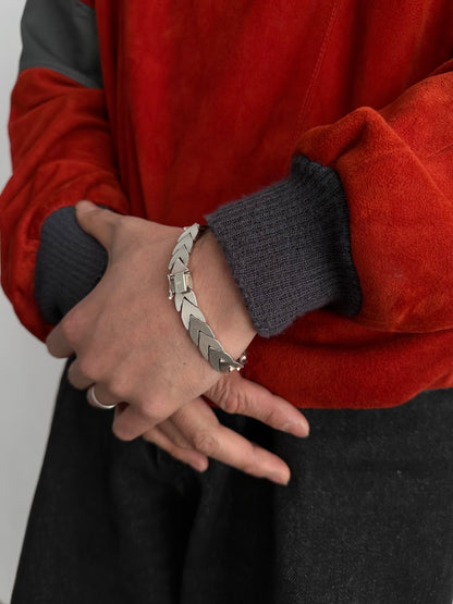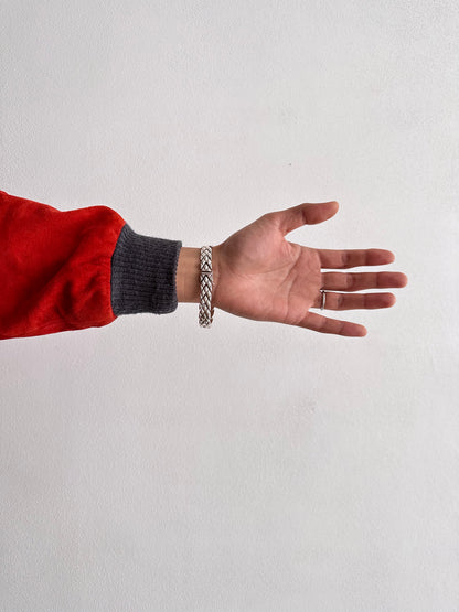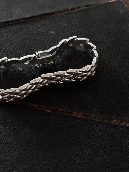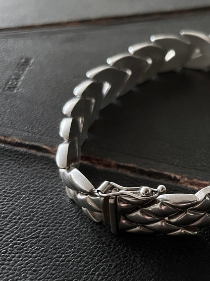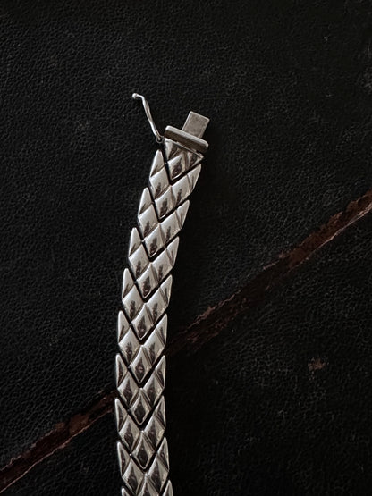 鮫肌のような鱗のデザインのシルバーブレスレット。
