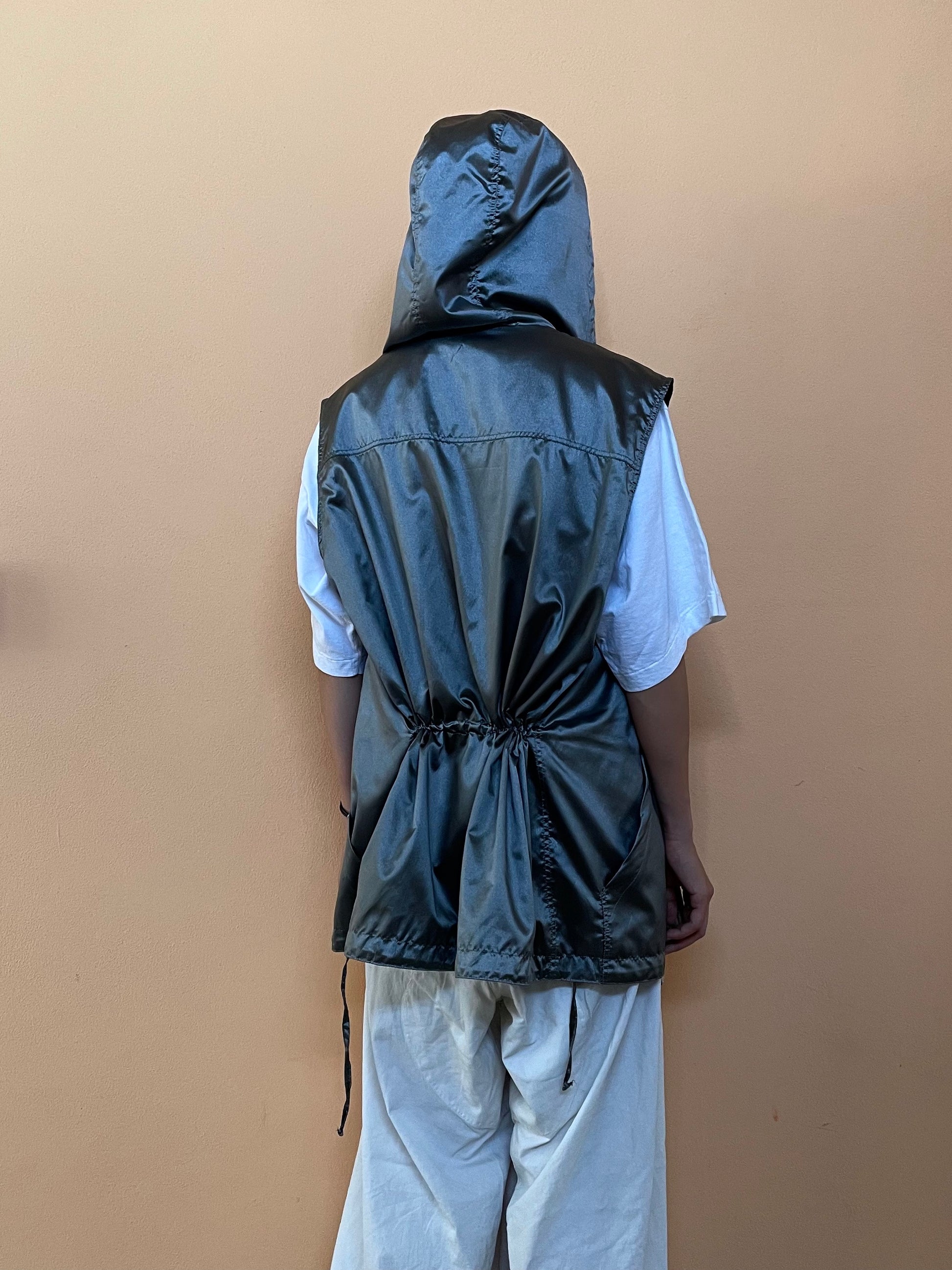 Silver metallic vest with hoodie