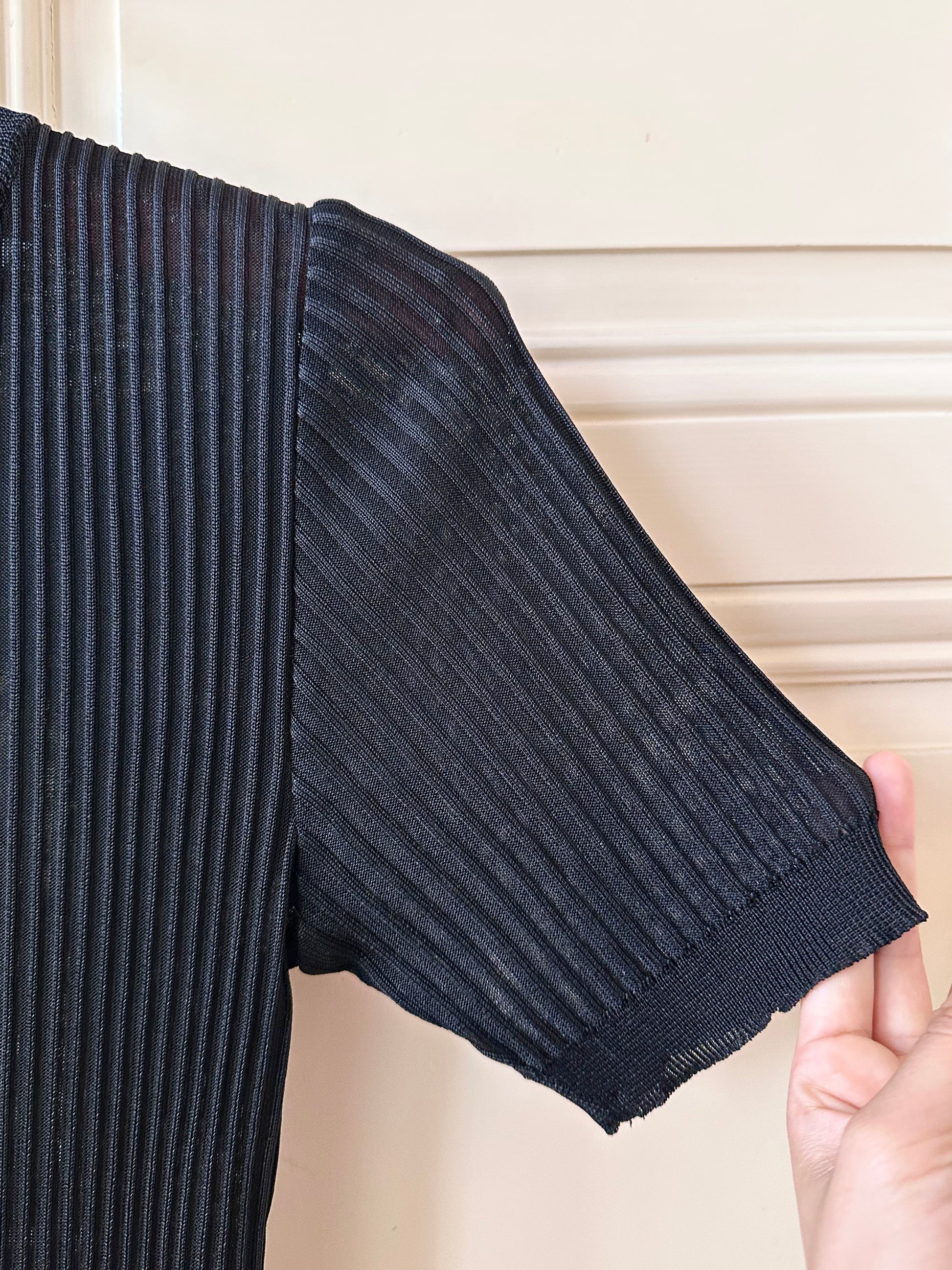シアーなviscoseのリブトップin Black。