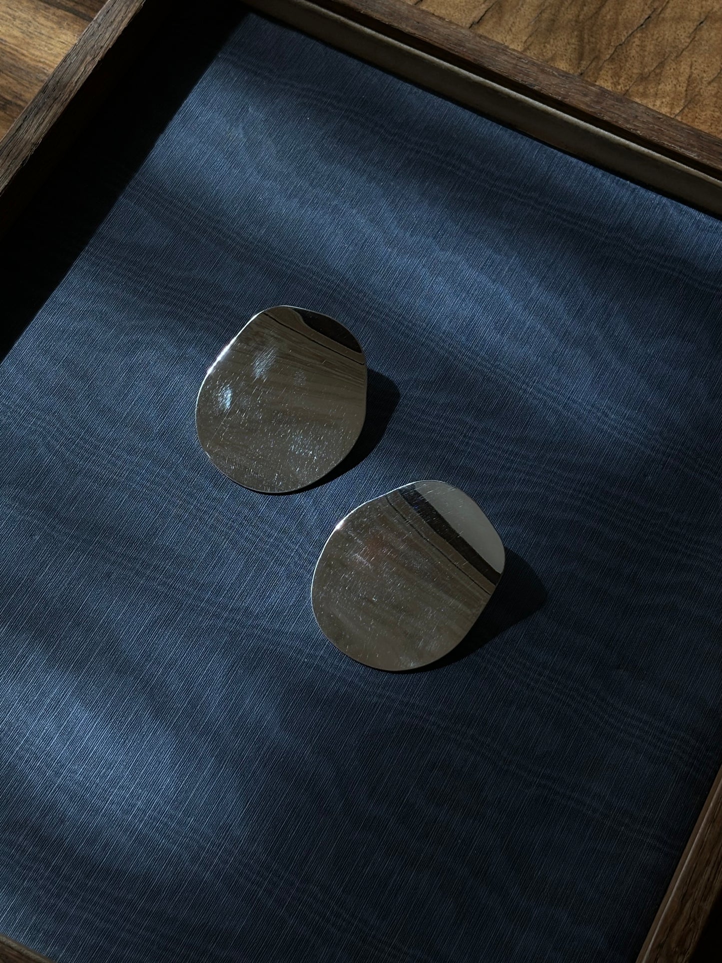 シルバーメタルのオーバルなイヤリング/ピアス。