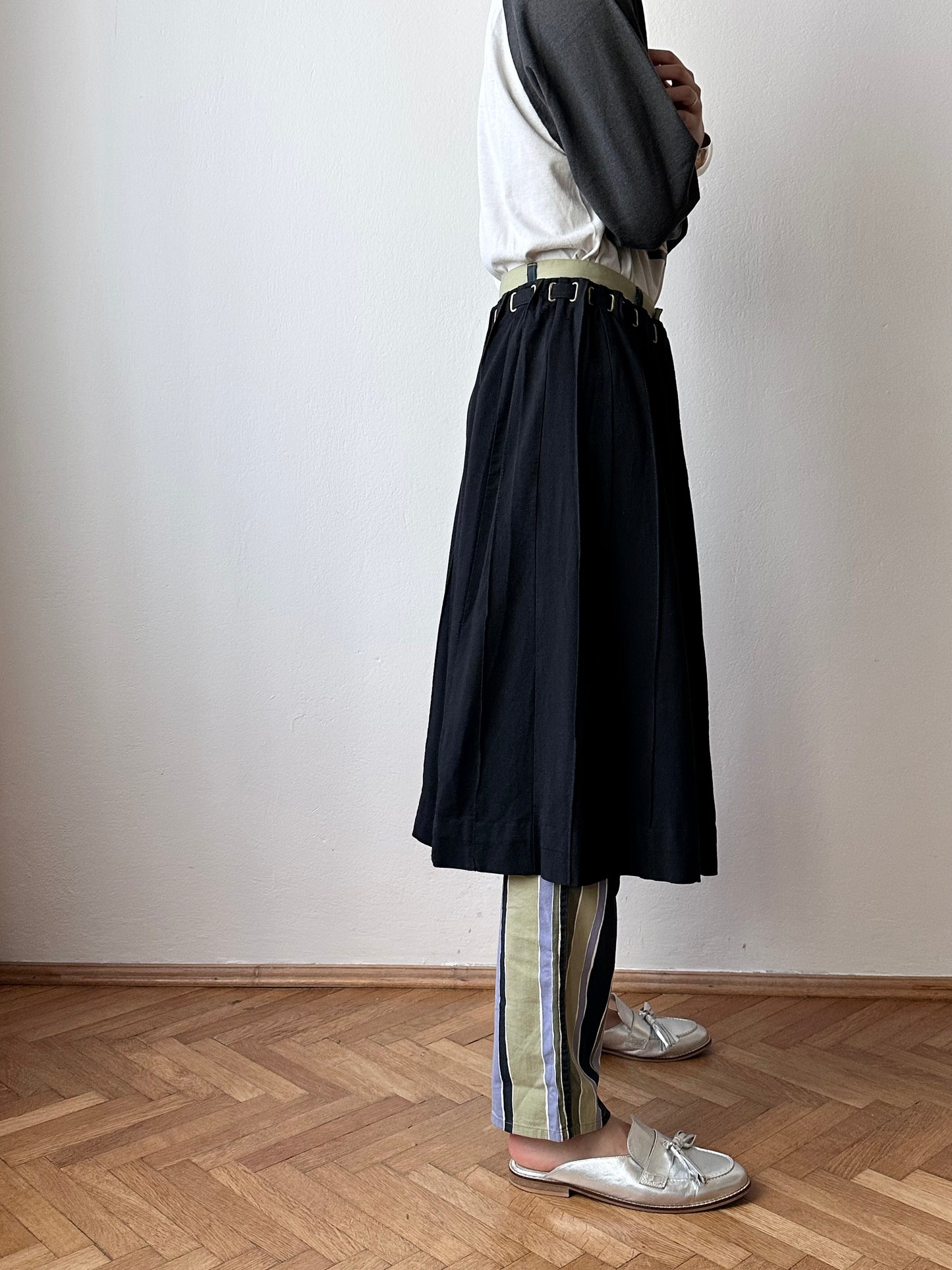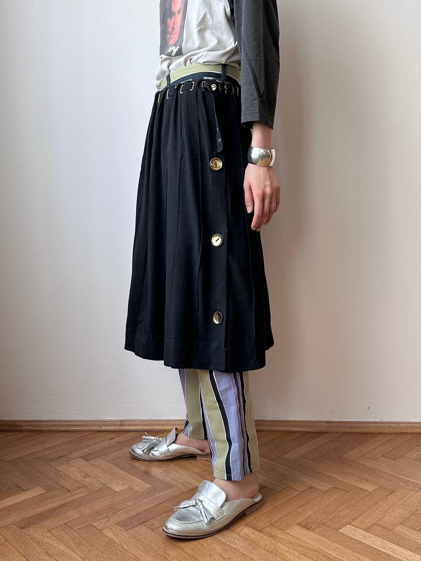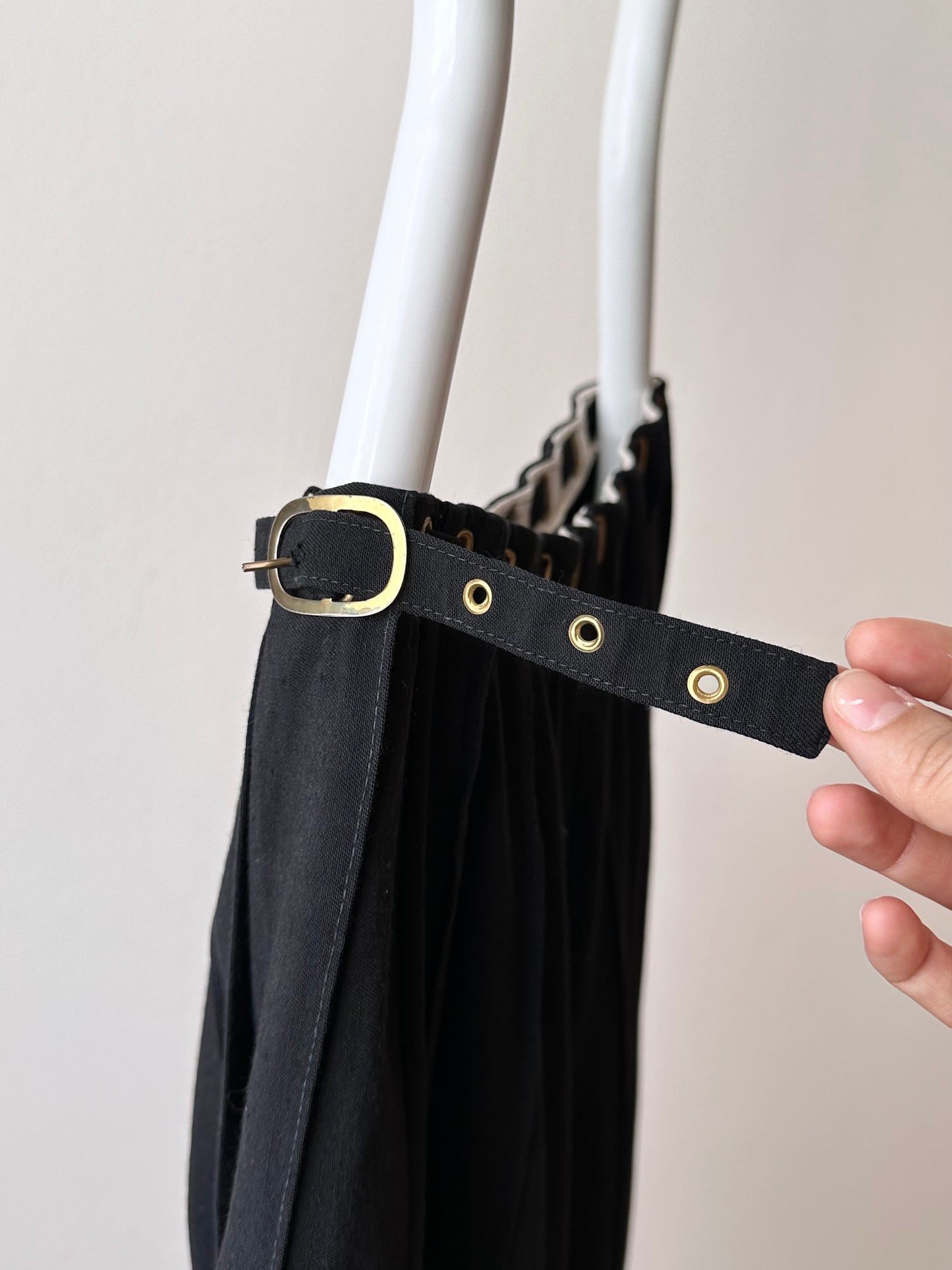 ウエストの細かいベルトデザイン、金具の質感と生地のマッチ、たまらないです。ベルトはちゃんと外すこともできます。