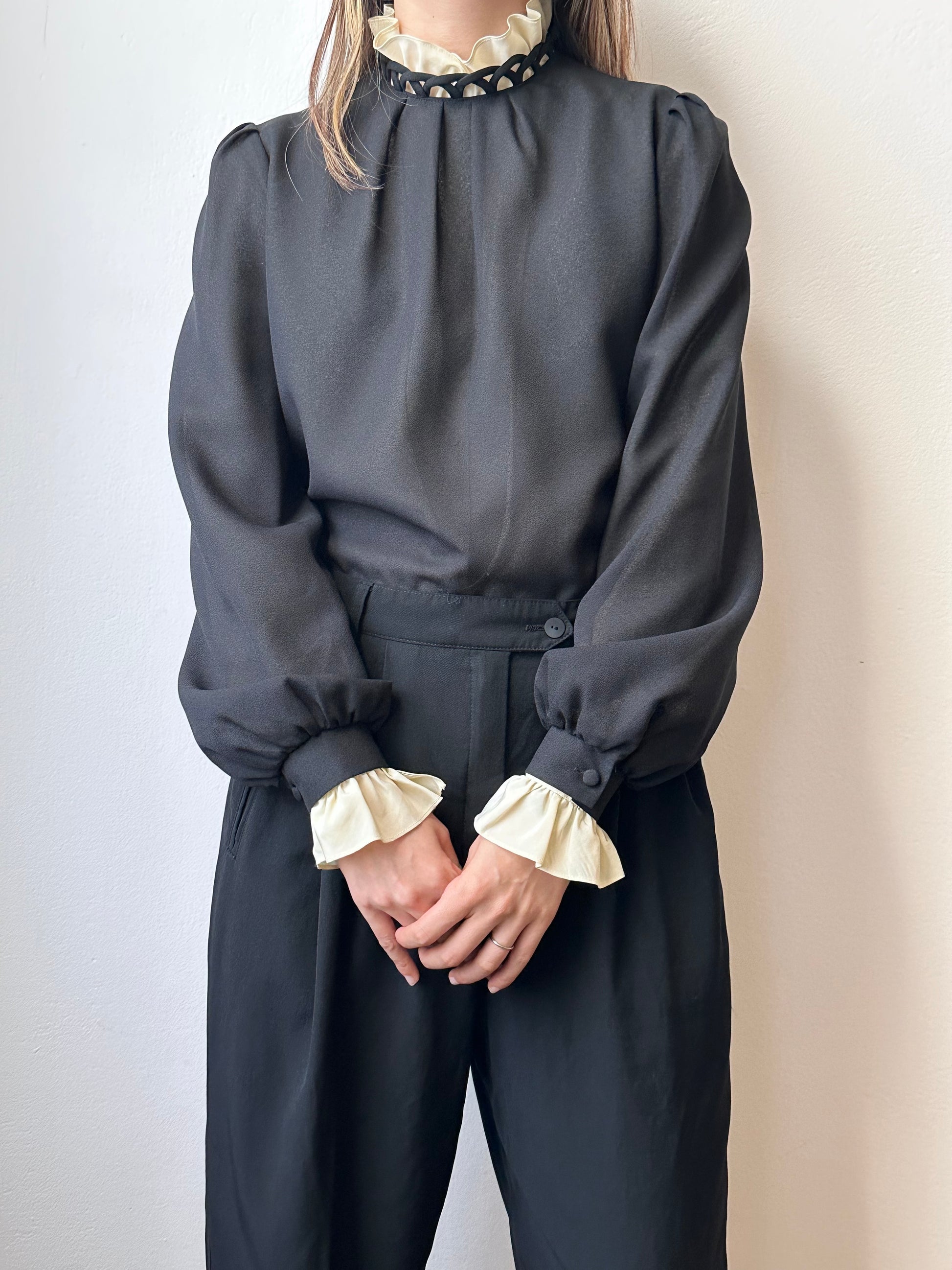 ブラウスは年中、スタメンです。シンプルにトラウザーにインしてクール。