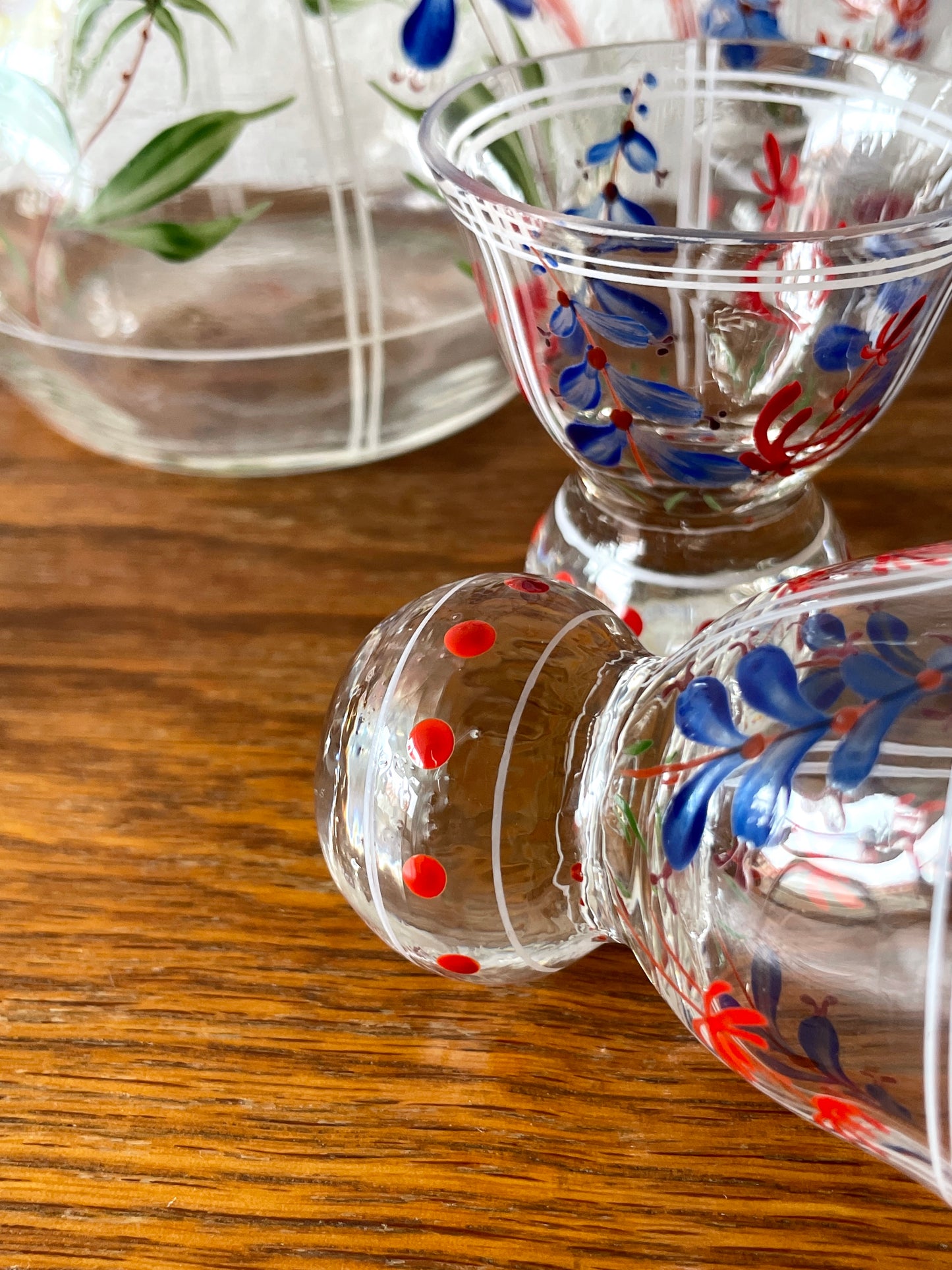 hand painted glass liquor service set