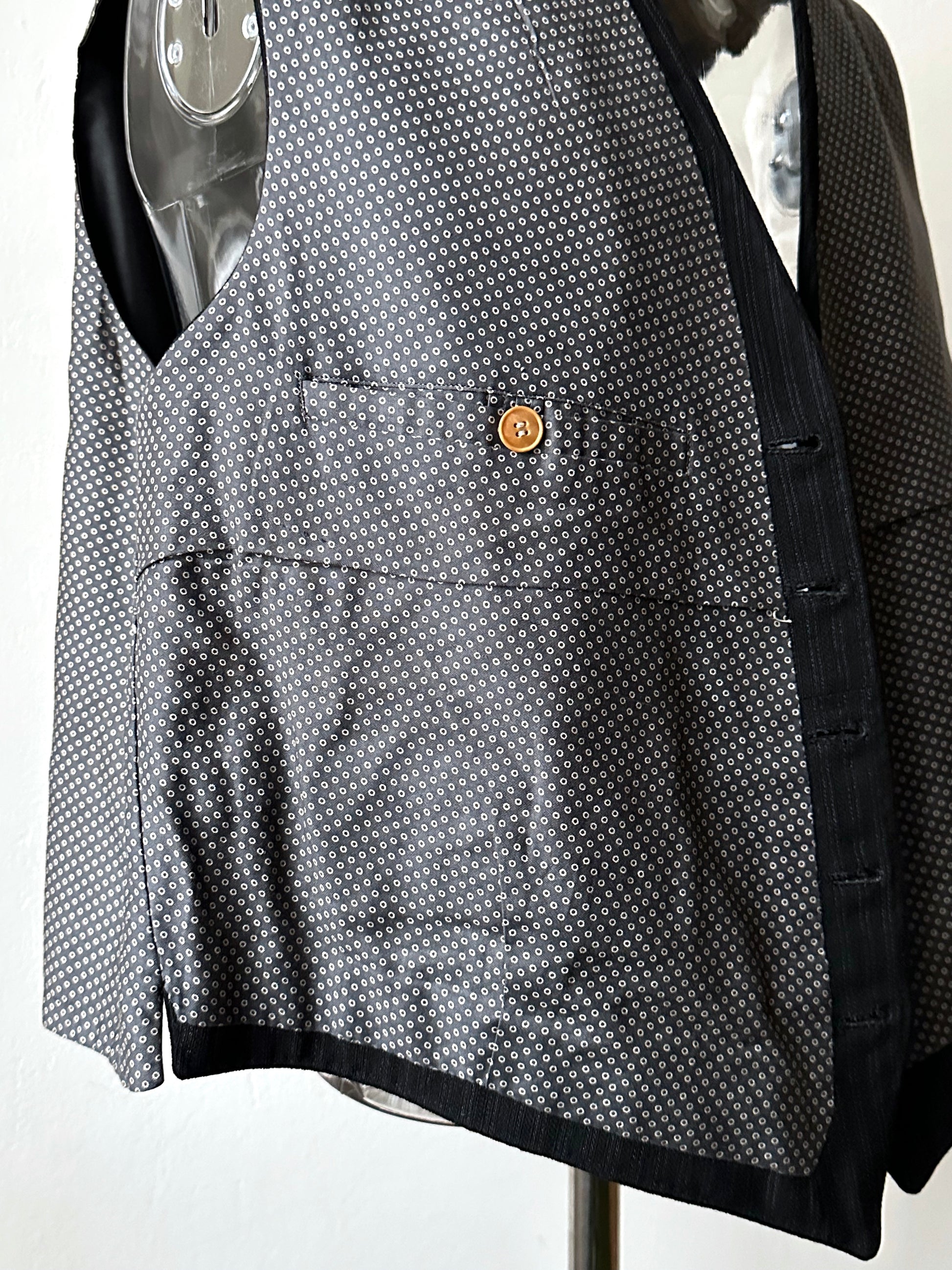 ウール生地ですが、毛足のあるヘビーな感じではありません、ただ触って頂けないのが残念ですがほんとに良い生地です、少しもちっとしてる。今この生地で3ピースオーダーしたとしてもわりといい金額行くと思います。
